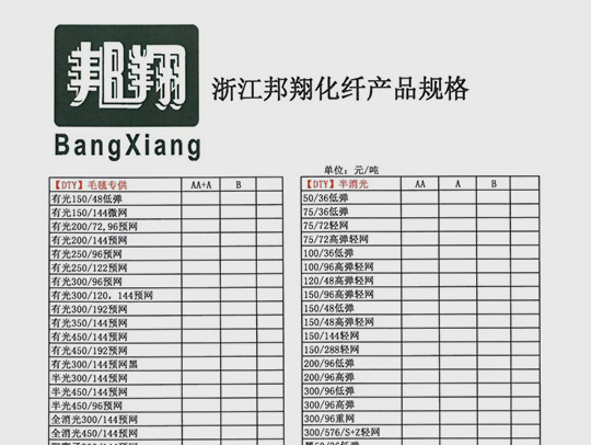 ตารางข้อมูลจำเพาะของผลิตภัณฑ์ Zhejiang Bangxiang Holding Group-รายการผลิตภัณฑ์